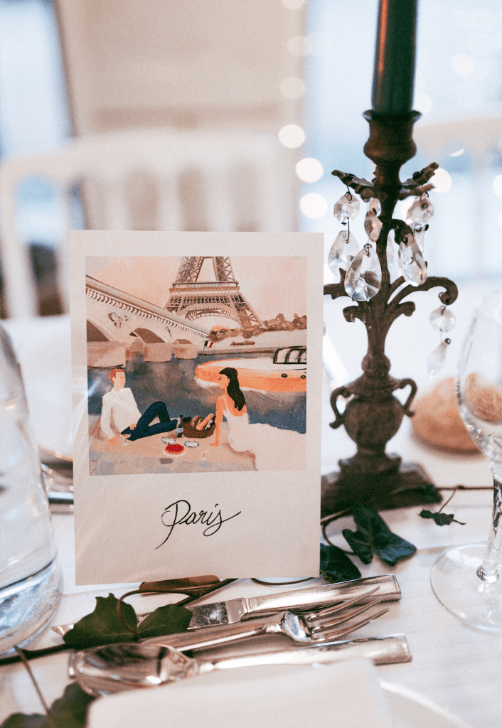Création de visuels uniques pour chaque table, invitant les convives à l’évasion.