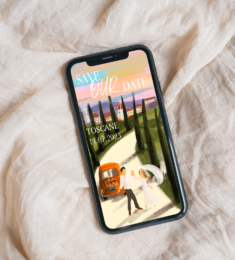 Conception d’un visuel digital sur mesure, mettant en avant le lieu de la cérémonie ou une activité phare, pour donner un avant-goût de l’événement.